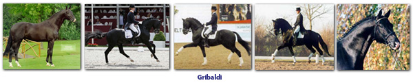 Gribaldi was 1996 Champion at his stallion inspection in Neumunster. Under Dutch team rider Edward Gal, Gribaldi has become and international Grand Prix dressage stallion. He has 10 licensed sons and based on the performance of Gribaldi€™s 7 and 8 year old progeny, the KWPN have recently proclaimed him a Keur stallion. Gribaldi has become the number one sire in Europe and he is very prepotent, producing high calibre, uniform offspring.