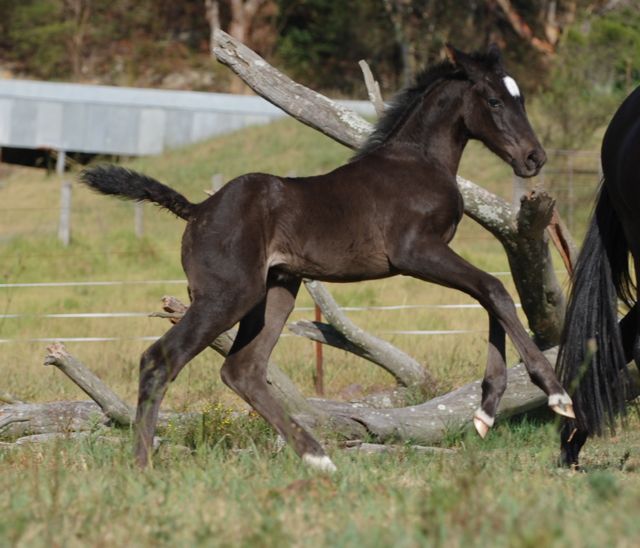Zoe has 2 full brothers, Wimborne Who's Encounter, a 16.2hh black gelding who competed to B grade showjumping with Katie Lawrence, then was used as a paraolympic mount in the Sydney Olympic Games before being exported overseas as a showjumper, and Wimborne Dane, a black stallion currently standing at stud in Hay NSW.