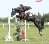 Escudo 1 was the winner of the 1994 stallion performance test in Germany. Escudo 1 exhibited phenomenal jumping talent during the stallion test and was awarded a jumping score of 144.90 points. He was described as "jumping like a rubber ball". At age 5 Escudo became Hannovarian Jumping Champion and Vice Federal Champion. In 1996 he won the Hannovarian Show Jumping Championships and in 1997 Escudo 1 was awarded the title of Champion six year old jumping horse.Escudo 1 went on to win several showjumping competitions at "s" level in 1999. In 2009 Escudo 1 was named Hannovarian Stallion of the Year.
