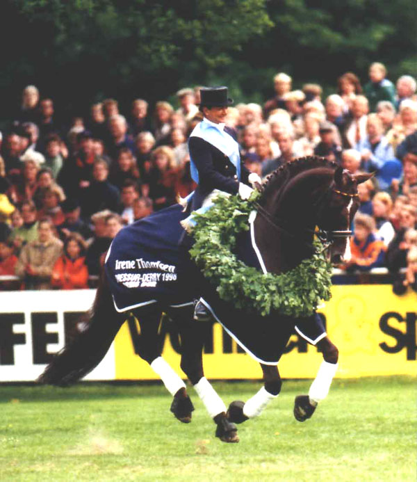 Donnerheist is by the legendary dressage stallion, Donnerhall. Donnerhall was until very recently the most successful dressage horse in the world. He managed like no other sire of his generation to combine success in breeding and in sport alike. in Germany alone he has produced over 77 licensed sons and more than 84 state premium mares as well as competing successfully in dressage at the highest level. To top off a ridden career full with awards and successes, Donnerhall with rider Karin Rehbein were part of the Gold Medal winning team at the 1998 Rome World Championships. As if this was not enough, Donnerhall also placed fourth in the individual rankings. Finishing at the the very top of his sport in 1998 Donnerhall retired from sport to continue his duties as a sire of countless champions to come. On 14th January 2002 Donnerhall passed away at the age of 21 from and acute intestinal toxicopathy. Donnerhall was already a legend in his own time and his progeny continue to shine his light long after he has left us.
